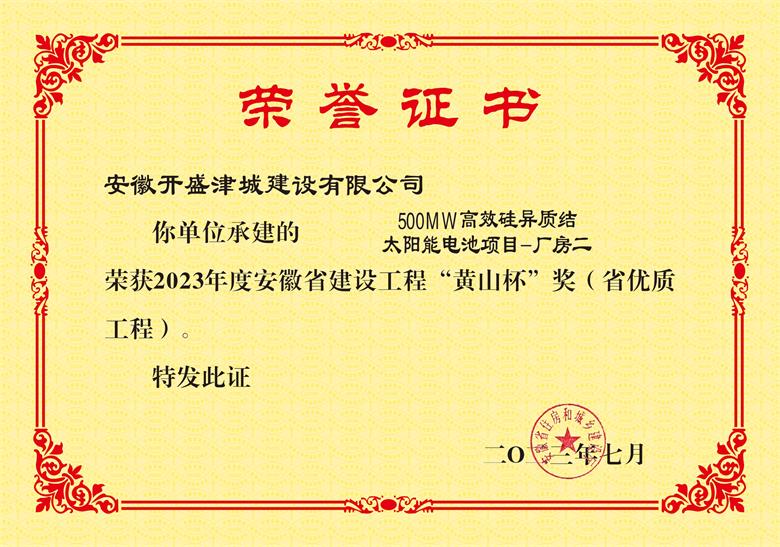 • 黃山杯--“500MW高效硅異質(zhì)結(jié)太陽(yáng)能電池項(xiàng)目-廠(chǎng)房二”
